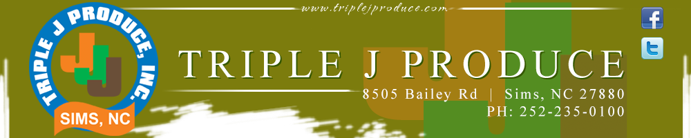Triple J Produce, Inc. is located in Sims, NC. We are a family owned business operated by Joey Hocutt. Our family has been involved in farming for three generations. We raise a diversified line of crops and take great pride in producing quality fresh produce. Our largest crop are Sweet Potatoes, we grow and handle 900 acres and partner with other growers to distribute a total of 3500 acres. We have 300 acres certified organics and continuing to grow our organic acreage.